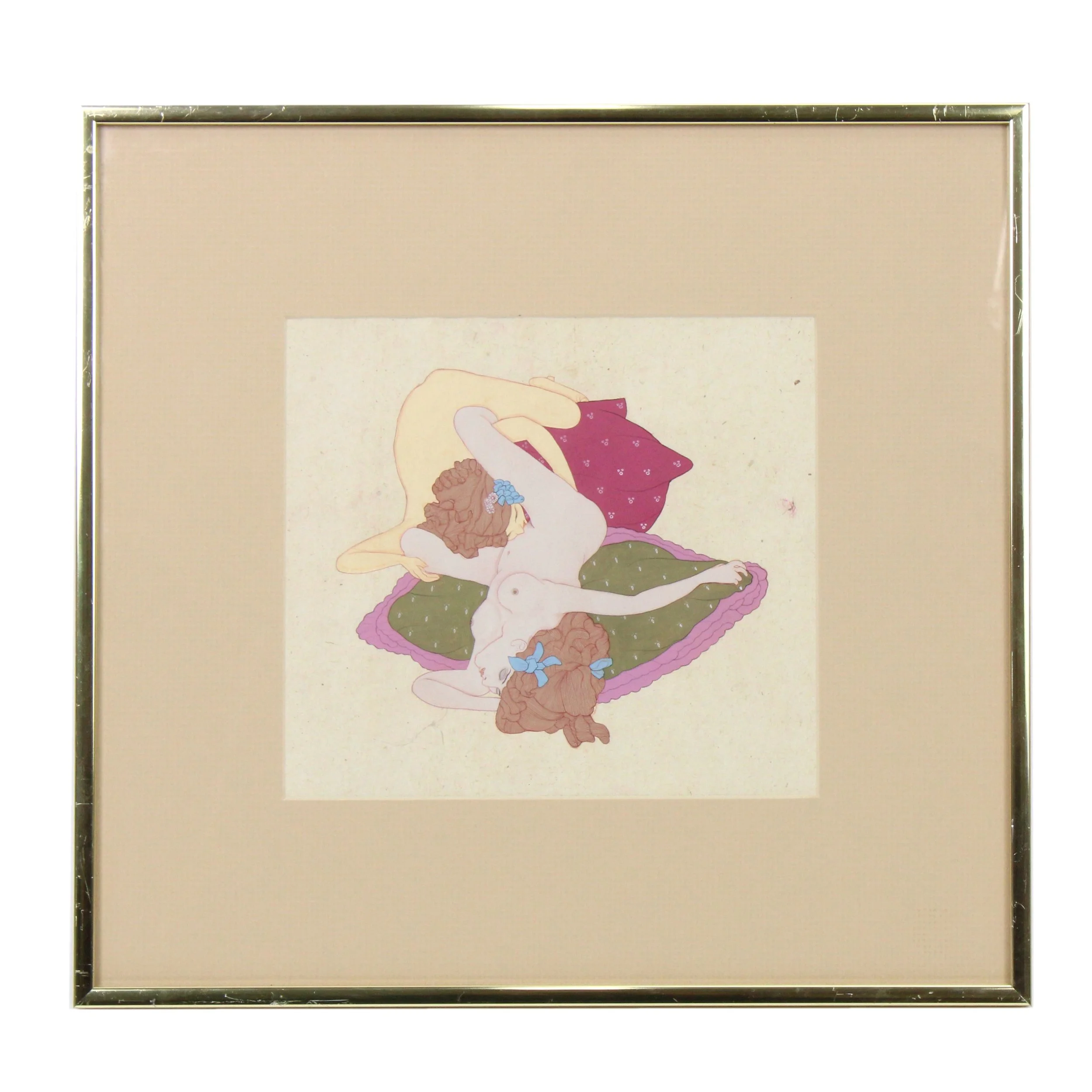 Categories: All Furniture Lighting Wall Art Objet d'art Originals Shop All | Furniture | Lighting | Wall Art | Objet d'art | Originals | SOLD - Custom Made Church Model Lamp $0.00 Sold out Pair of Vintage Postmodern Marble Intersecting Triangle End Tables $1,195.00 Vintage Architectural Handmade Triangular Pedestal Sculpture Plant Stand $395.00 Vintage Brutalist Abstract Pencil Drawing Interior with Seated Nude Signed W. Jelinek $595.00 Vintage Postmodern Memphis Style Artist Made Console Hall Table by Lynn Sweet $895.00 Vintage Brutalist Abstract Pencil Drawing Interior with Seated Nude Signed W. Jelinek $495.00 Vintage Mid-Century Modern Mahogany Widdicomb Dresser Professionally Restored $1,495.00 Daniel Meyer Abstract Memphis Inspired Sculpture Wood Morphing into Acrylic $2,495.00 1930s Oil Painting Portrait of Seated Nude Grant Reynard Ashcan School $595.00 Sold out Vintage Mid Century Modern Four Mirror Panel Room Divider Screen Double Hinged $795.00 Pair of Antique Handmade Caned Carved Anglo Indian Armchairs $995.00 Mid Century Modern Italian Abstract Geometric Oil Painting Houses Signed Marzio Guasti $495.00 SOLD - Vintage Original Pencil Drawing Nude in Repose on Bed $0.00 Sold out Vintage Mid Century Modern Pen and Ink Drawing of Modern Sculptures $225.00 Large Vintage Handmade Punched Tin Hojalata Mexican Folk Art Wall Mirror $895.00 Mid Century Modern Abstract Egg Oil Painting by Oscar Rodriquez 1969 Mexican $395.00 SOLD - Antique 1908 Photograph Golden Retriever Dog Pointing by Detroit Photographic Co. $0.00 Sold out SOLD - Naive Oil Painting on Board Hercules in Centurion Helmet Riding Pegasus $0.00 Sold out Vintage Mid Century Modern Abstract Painting Signed Aatis Lillstrom Wisconsin Artist $395.00 Large Vintage Artist Made Hanging Aluminum Mobile Sculpture $1,495.00 Mid-Century Modern Metafora Marble Coffee Table by Vignelli for Casigliani $3,995.00 Vintage Folk Art Kinetic Balance Sculpture of Soldier Riding Horse $195.00 Vintage Mid Century Modern Aldo Londi Blue Rimini Pottery Vase for Bitossi $195.00 Vintage Mid-Century Modern Charcoal Drawing of Nude Woman in Gilt Frame $365.00 Vintage Mission Arts & Crafts Pedestal Plant Stand with Parquetry Inlaid Top $595.00 SOLD - Vintage Art Deco Handmade Scroll Cut Side Table $0.00 Sold out SOLD - Vintage Rustic Handmade Pine Side Table with Tapered X Shaped Base $0.00 Sold out Vintage Mid 20th Century Swing Arm Floor Lamp with Spiral Wood Base $225.00 Vintage Handmade Light Up Three Tiered Retail Store Item Display Shelf $395.00 SOLD - Vintage Heavy Oil Paint Painter's Palette $0.00 Sold out Antique 19th Century Genre Oil Painting of Flower Salesman in Courtyard $995.00 Vintage Mid Century Modern Monochromatic Mixed Media Abstract Painting $595.00 Large Vintage Nude Male Bronze Sculpture by Donald Claude Noel $2,995.00 Vintage Surrealist Bizarre Hand Carved Wood Bird Woman Creature Sculpture $495.00 Leonardo Nierman White Onyx Marble Bird in Flight Sculpture $2,750.00 Antique Handmade Folk Art Tramp Art Wall Mirror $745.00 Vintage Large Swirling Blown Glass Abstract Sculpture by Rollin Karg $395.00 Vintage Art Nouveau Style Portrait of Woman in Yellow Dress Acrylic Painting $745.00 SOLD - Antique Oil Painting of Opulent Interior Scene with Sofa and Neoclassical Sculpture $0.00 Sold out Vintage 1950s Abstract Geometric Pencil Drawing in Gilt Frame $245.00 Vintage Portrait of Ballerina with Bun Ponytail in Profile Oil Painting $275.00 Vintage Lesbian Erotica Gouache Painting Two Female Bathers Piggy Back $395.00 Vintage Lesbian Erotica Gouache Painting Two Nude Women Masturbating on Floor Pillow $395.00 Vintage Lesbian Erotica Gouache Painting Two Nude Women Cunnilingus $395.00 Vintage Lesbian Erotica Gouache Painting Gibson Girl Woman Masturbating $395.00 SOLD - Vintage Industrial Full Size Scale Postmodern Gridded Metal Display Male Mannequin $0.00 Sold out Vintage Modernist Biomorphic Burl Wood Hand Carved Sculpture by Brian Sykes $445.00 Vintage Mixed Media Postmodern Pastel Tone Painting Wall Sculpture #2 $695.00 Vintage Mixed Media Postmodern Pastel Tone Painting Wall Sculpture #1 $695.00 Vintage Large Mid-Century Modern Colorful Hard Edge Acrylic Painting $1,250.00 Vintage Studio Pottery Ridged Biomorphic Blue Ceramic Vase by Frank Fabens $195.00 SOLD - Vintage Mid-Century Modern Color Theory Grid Screenprint $0.00 Sold out Quilted Mixed Media Figural Abstract Print on Silk by Joan Schulze $1,150.00 Vintage Modernist Fantastical Artist Made Modernist Steel Large Side Table with Glass Orb $1,295.00 Vintage Mid-Century Modern Abstract Waves Latch Hook Fiber Art $125.00 Vintage Metallic Abstract Expressionist Oil Painting $295.00 Mastercraft Mid-Century Brass & Black Lacquer Lighted Vitrine Display Cabinet $1,495.00 SOLD - Vintage Mid-Century Modern Custom Made Dinette Set with Round Table and Stools $0.00 Sold out Mid-Century Modern Staggered Chrome Dressing Folding Screen by Arthur Umanoff $1,695.00 SOLD - Pair of Mid-Century Modern White Glass Mosiac Tile Top End Tables $0.00 Sold out Vintage Restored Mid-Century Modern Cow Print Armchair $695.00 Monumental Custom Made Fiberglass Palm Motif Floor Vase $750.00 Vintage Artist Made Biomorphic Cast Aluminum Sculptural Table with Neon $1,850.00 Set of Four Vintage Handmade Oak French Dining Chairs $1,695.00 SOLD - Vintage Surrealist Pencil Drawing of Woman Standing Inside Boxes $0.00 Sold out Vintage Ornate Hand Hammered Tin Hojalata Console Table $1,250.00 Vintage McGuire Wheat Sheaf Bamboo Pedestal Base Center Dining Table $595.00 Large 2008 Oil Painting Selfie Portrait of Two Teenage Girls in Swimsuits $545.00 Mid-Century Modern Biomorphic White Resin Pendant Chandelier Lamp $495.00 Large Vintage Carved Mahogany Sculpture of Embracing Lovers $1,650.00 SOLD - Vintage Mid Century Modern Abstracted Expressionist Floral Oil Painting $0.00 Sold out Vintage Mid Century Modern Biomorphic Unraveled Peeled Fruit Abstract Oil Painting $395.00 Vintage 1950s Pencil Drawing of Elderly M